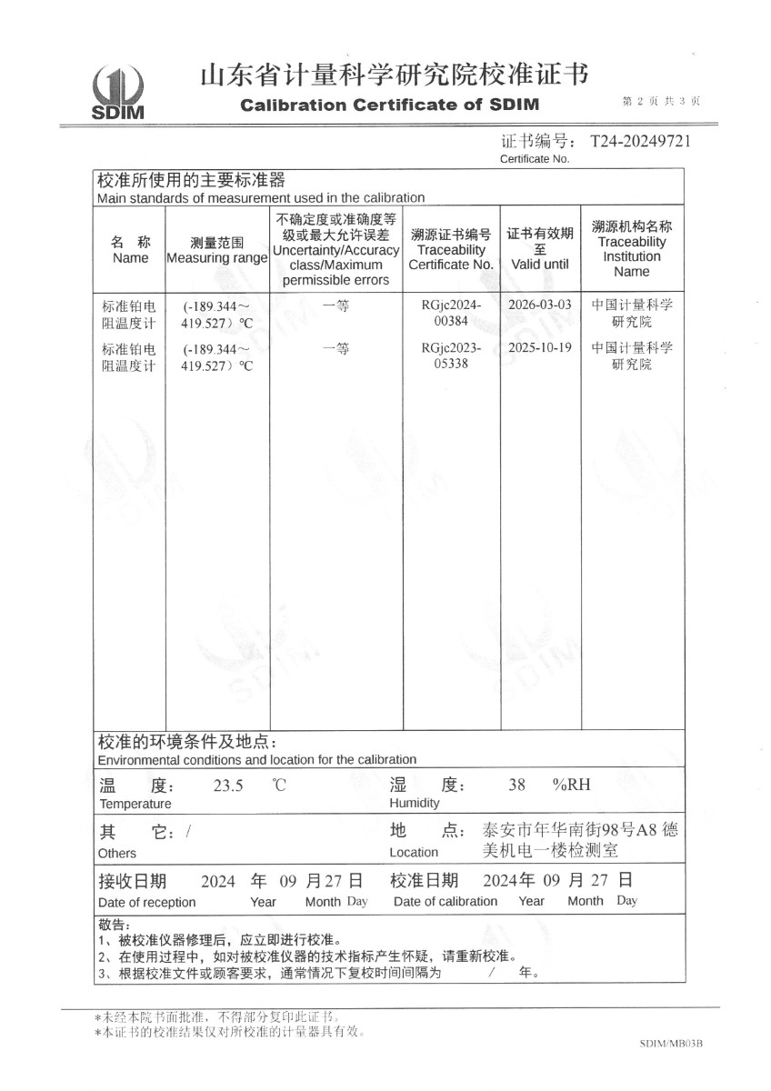 | 上一條:DY-YC-550高精度恒溫鹽槽(160℃~550(600℃)) | 下一條:高精度數(shù)字溫度計(jì)-校準(zhǔn)證書 |