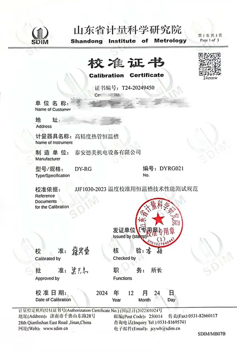 | 上一條:油槽(70~300℃)校準(zhǔn)證書(shū) | 下一條:高精度數(shù)字溫度計(jì)-校準(zhǔn)證書(shū) |