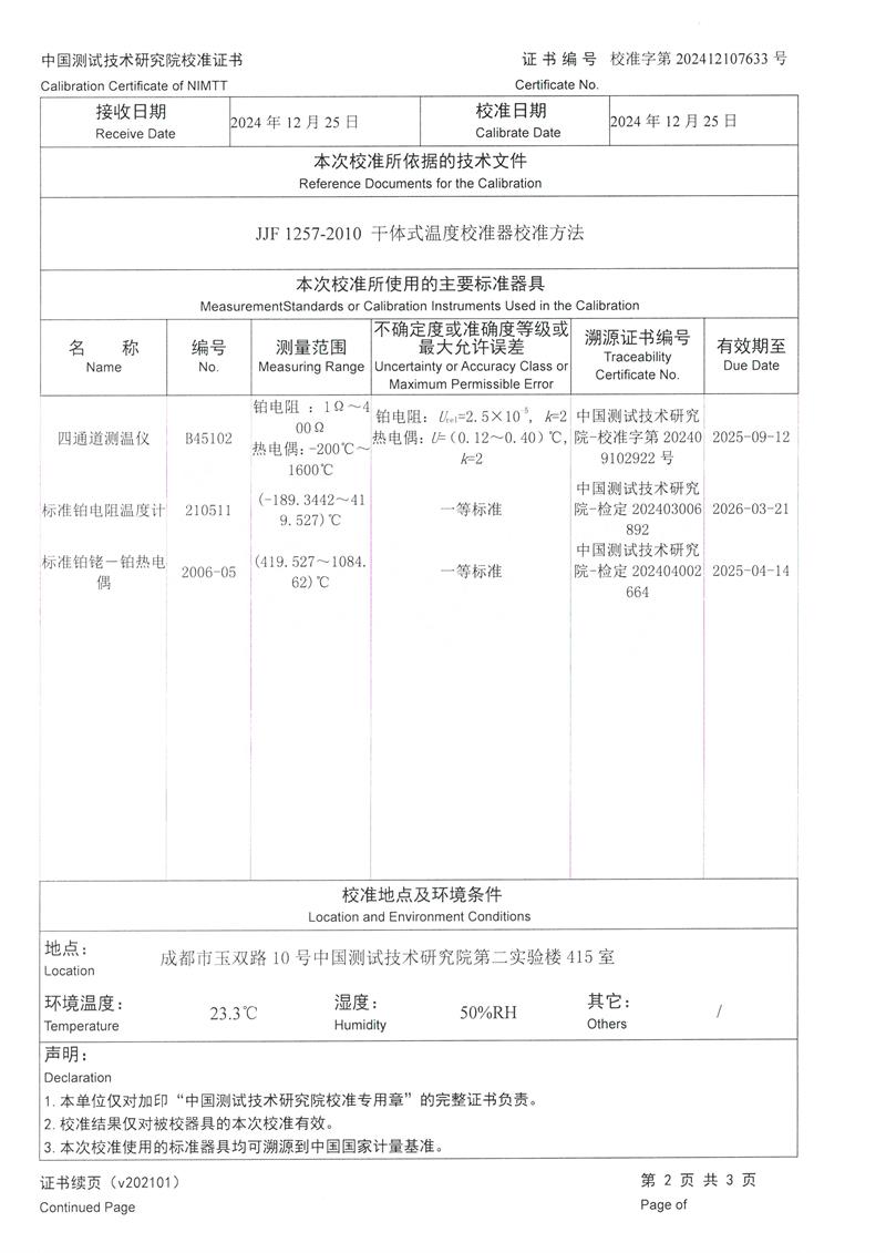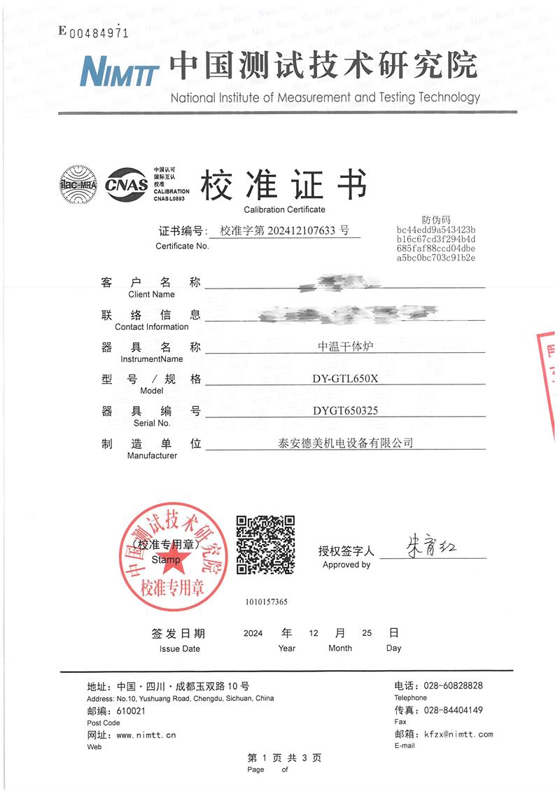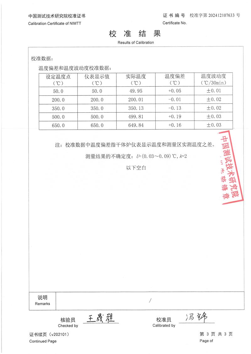 中溫干體爐(50~650℃)校準證書 2025-1-2 本文被閱讀 8545 次