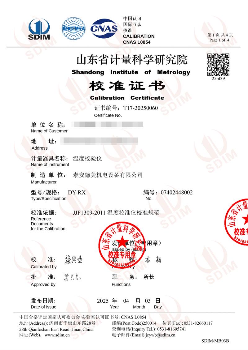 溫度校驗儀校準證書 2025-4-7 本文被閱讀 4818 次