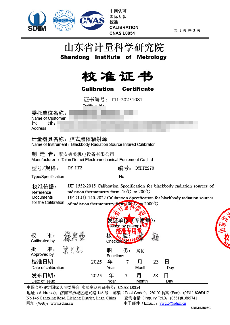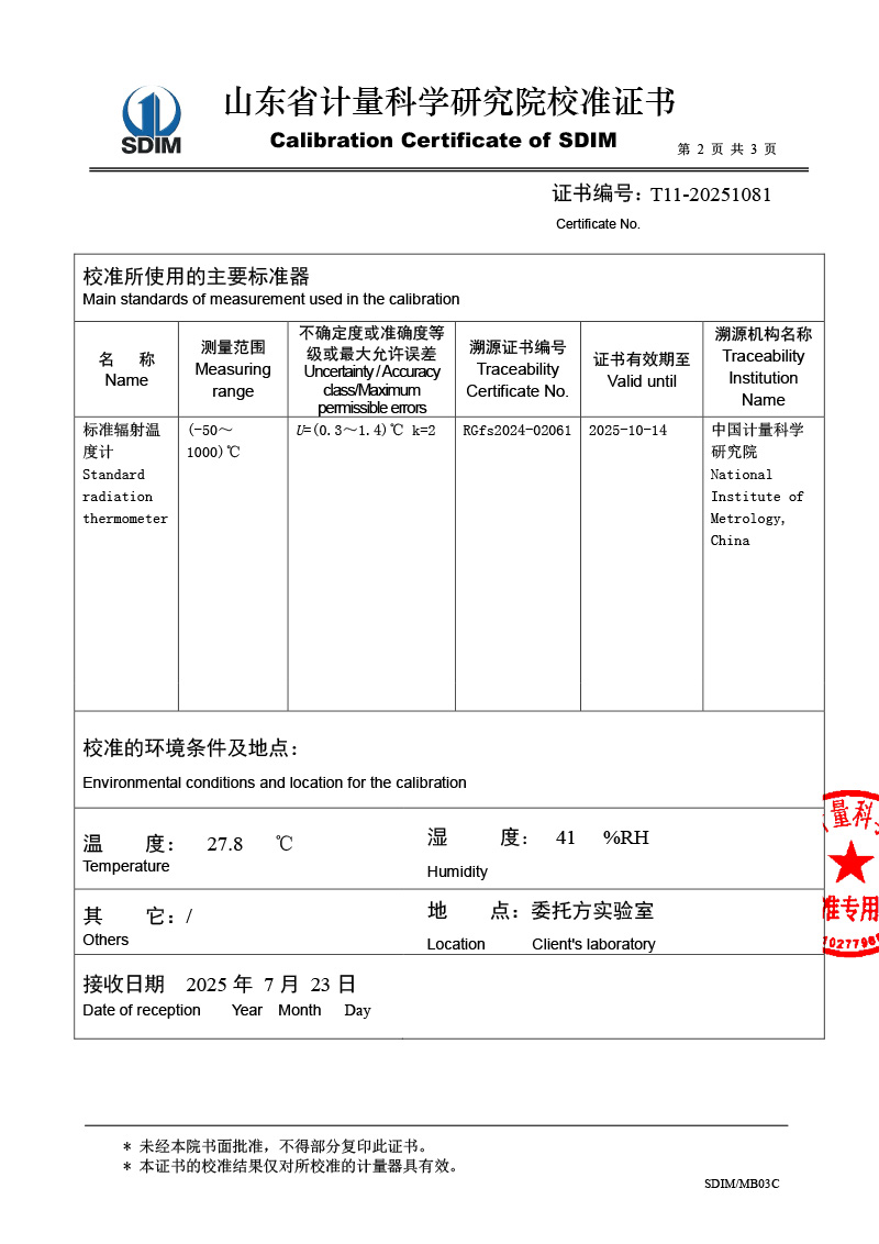 | 上一條:低溫面源黑體爐(0-60℃)校準(zhǔn)證書 | 下一條:高精度數(shù)字溫度計(jì)-校準(zhǔn)證書 |