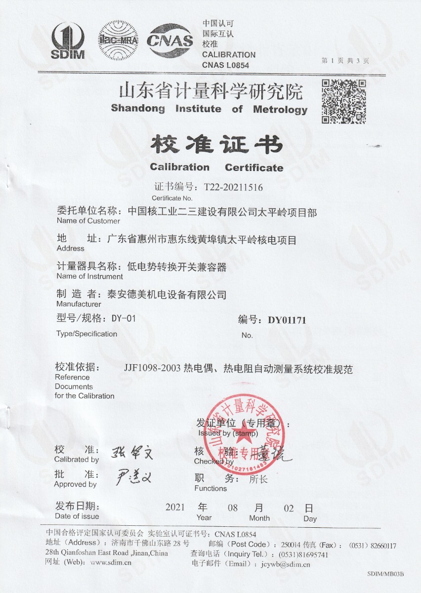 上一條:中國(guó)核工業(yè)二三建設(shè)有限公司太平嶺項(xiàng)目部水平尺專(zhuān)用校準(zhǔn)臺(tái)下一條:高精度數(shù)字溫度計(jì)-校準(zhǔn)證書(shū)