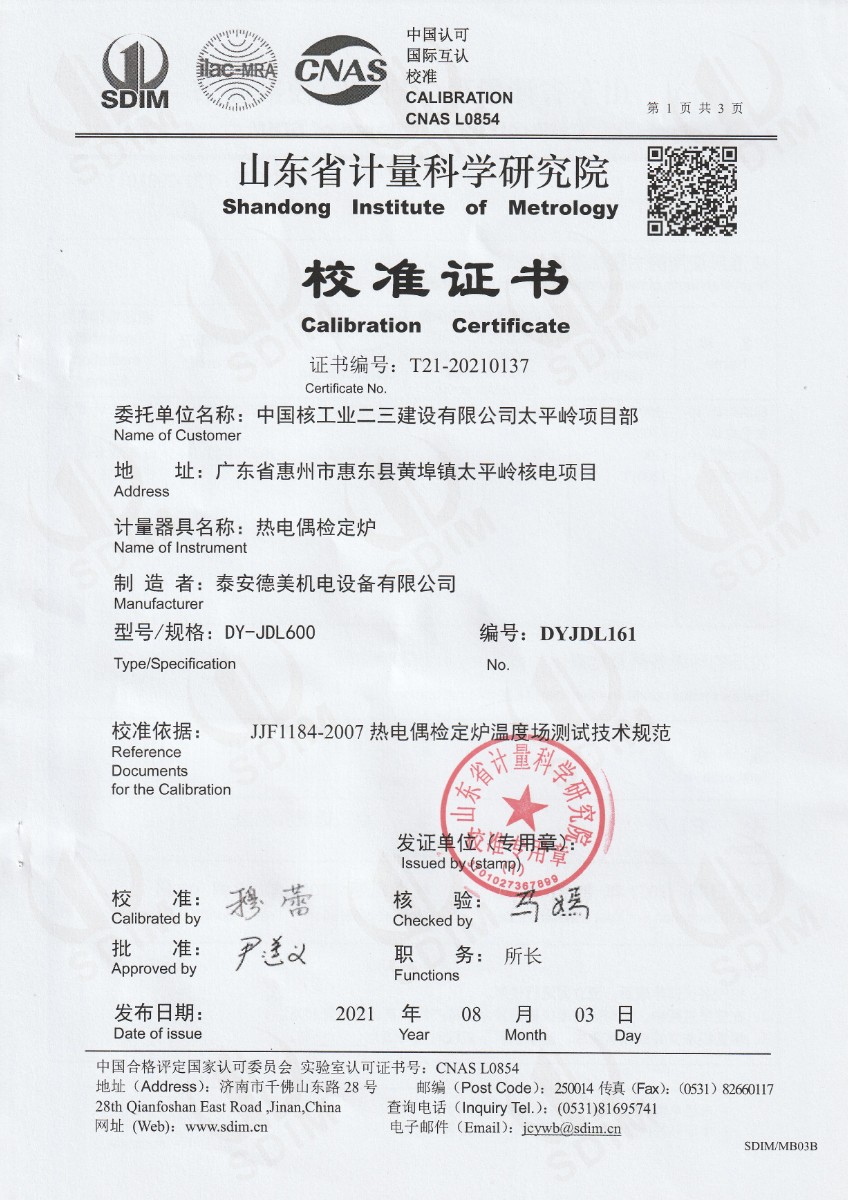 | 上一條:中國核工業(yè)二三建設(shè)有限公司太平嶺項(xiàng)目部-精密恒溫油槽 | 下一條:高精度數(shù)字溫度計(jì)-校準(zhǔn)證書 |