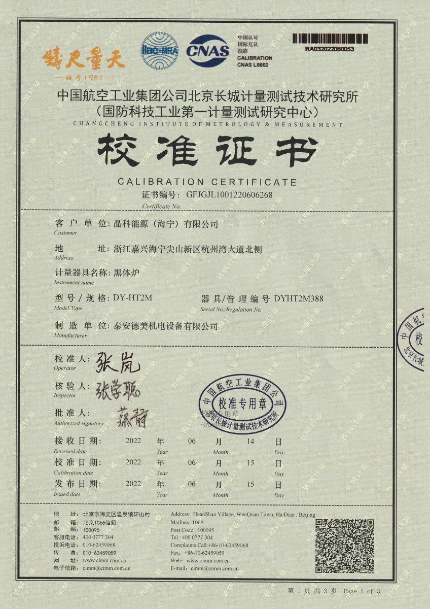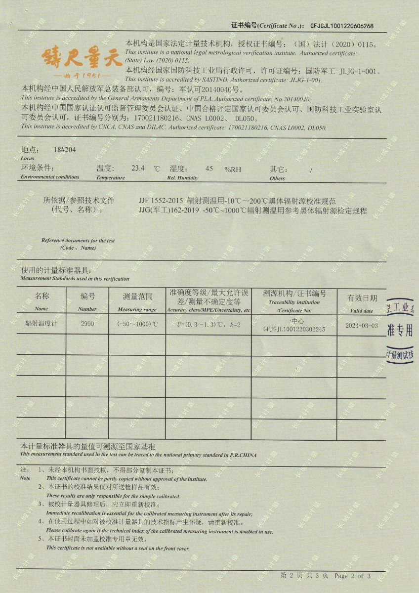 | 上一條:中睿(天津)檢驗(yàn)檢測有限公司-冷鏡式露點(diǎn)儀檢定證書 | 下一條:高精度數(shù)字溫度計(jì)-校準(zhǔn)證書 |