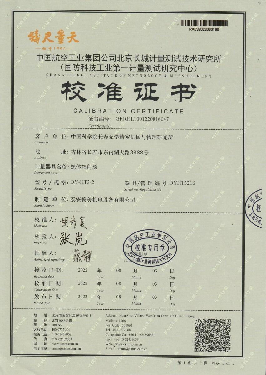 | 上一條:中國科學(xué)院長春光學(xué)精密機(jī)械與物理研究所-黑體爐DY-HT3-1 | 下一條:高精度數(shù)字溫度計-校準(zhǔn)證書 |
