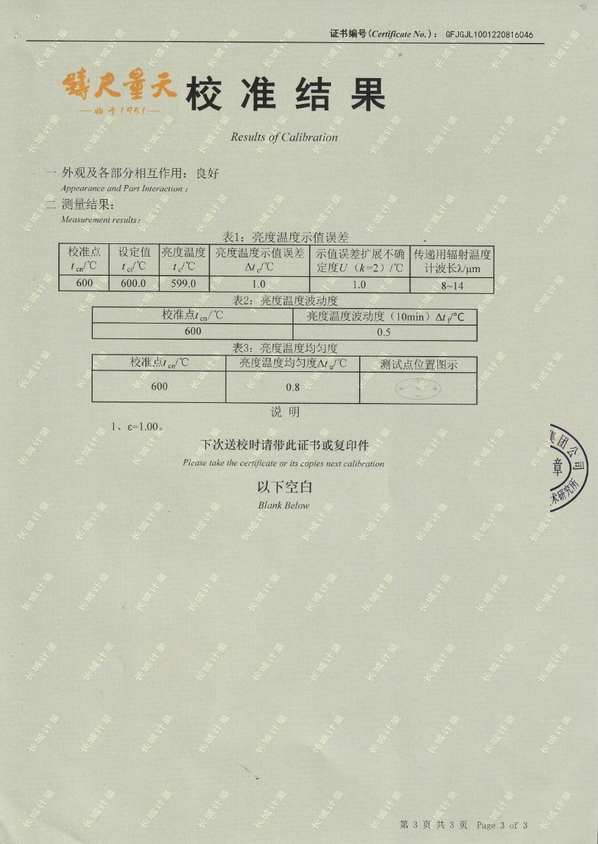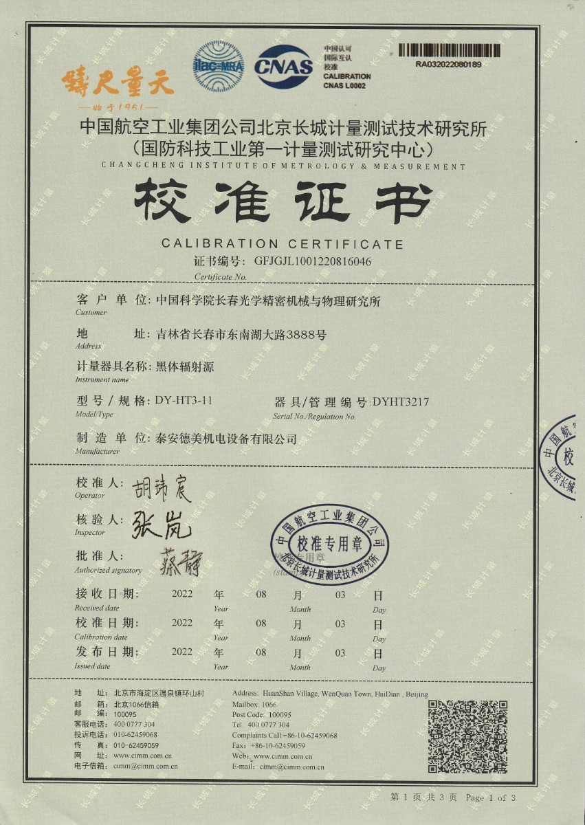 | 上一條:中國科學(xué)院長春光學(xué)精密機(jī)械與物理研究所-黑體爐DY-HT3-2 | 下一條:熱工自動(dòng)檢定系統(tǒng)-校準(zhǔn)證書 |