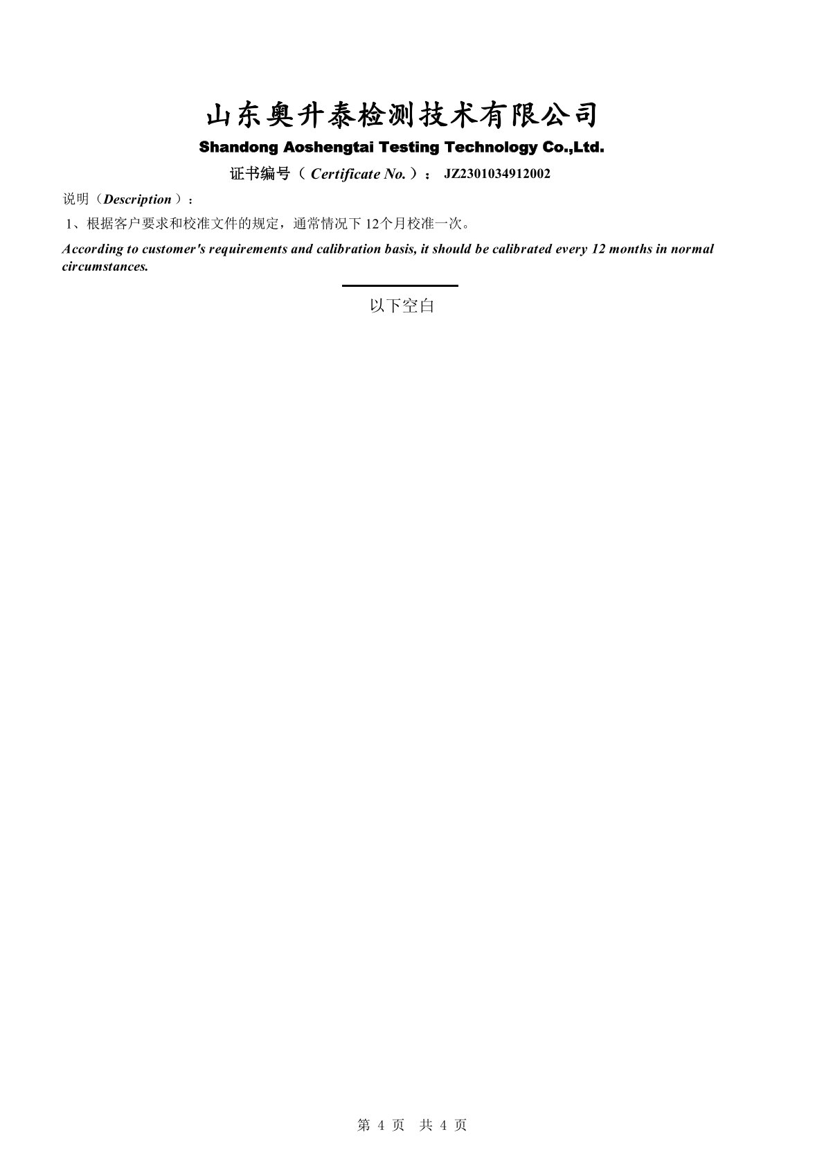 | 上一條:海峽富民生質(zhì)檢技術(shù)服務(wù)有限公司 溫濕度檢定箱校準(zhǔn)證書(shū)(1) | 下一條:高精度數(shù)字溫度計(jì)-校準(zhǔn)證書(shū) |