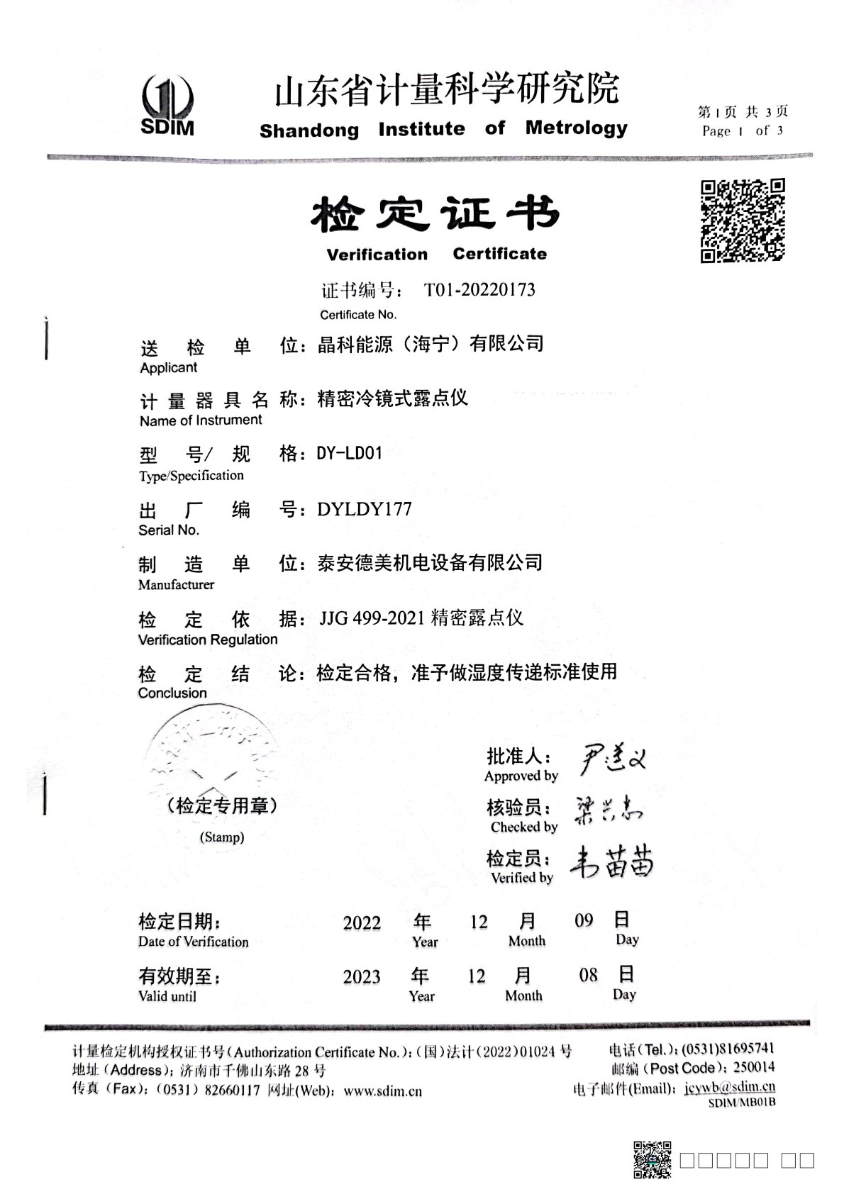 | 上一條:海峽富民生質(zhì)檢技術(shù)服務(wù)有限公司 溫濕度檢定箱校準(zhǔn)證書(2) | 下一條:高精度數(shù)字溫度計-校準(zhǔn)證書 |