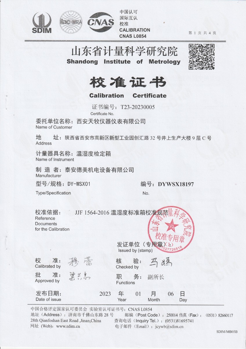 上一條:晶科能源(海寧)有限公司 精密冷鏡式露點儀(溫度) 校準證書下一條:高精度數(shù)字溫度計-校準證書