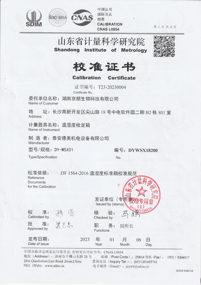 湖南京麒生物科技有限公司 溫濕度檢定箱 2023-1-16 本文被閱讀 15476 次