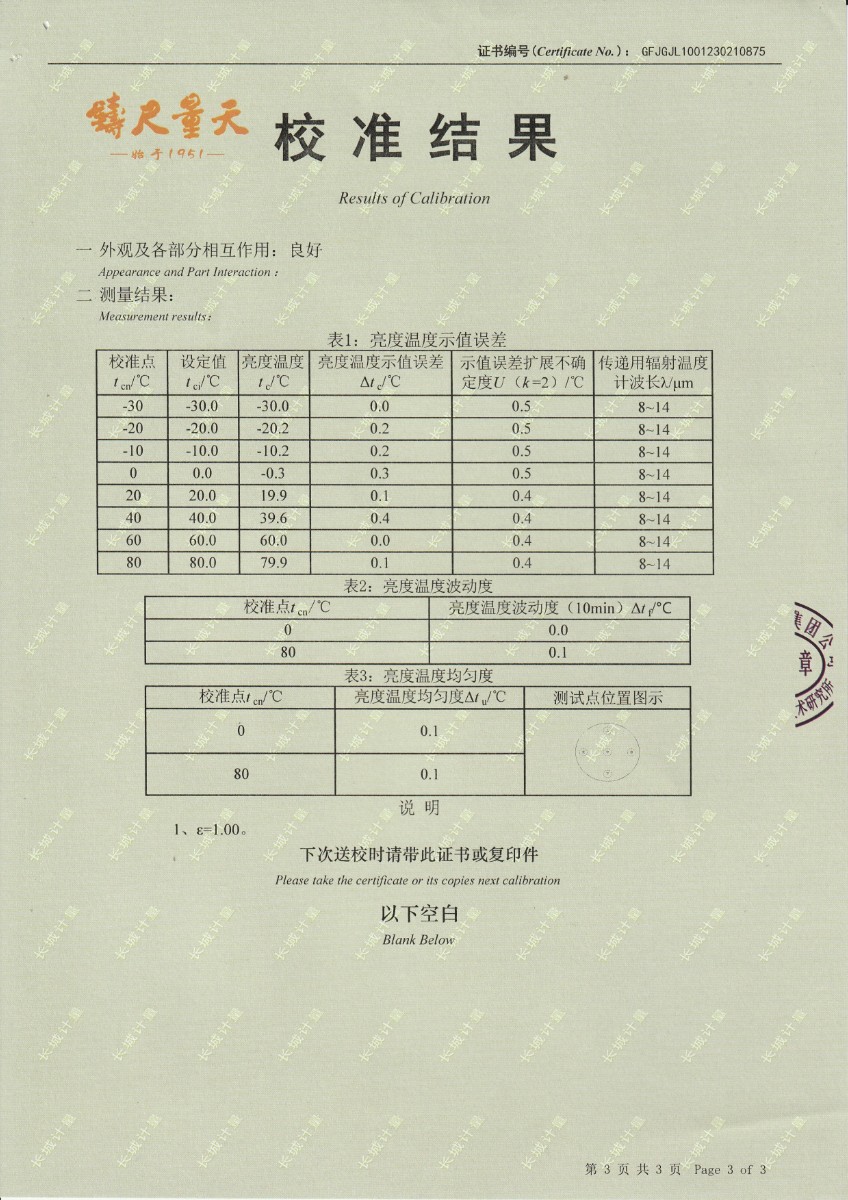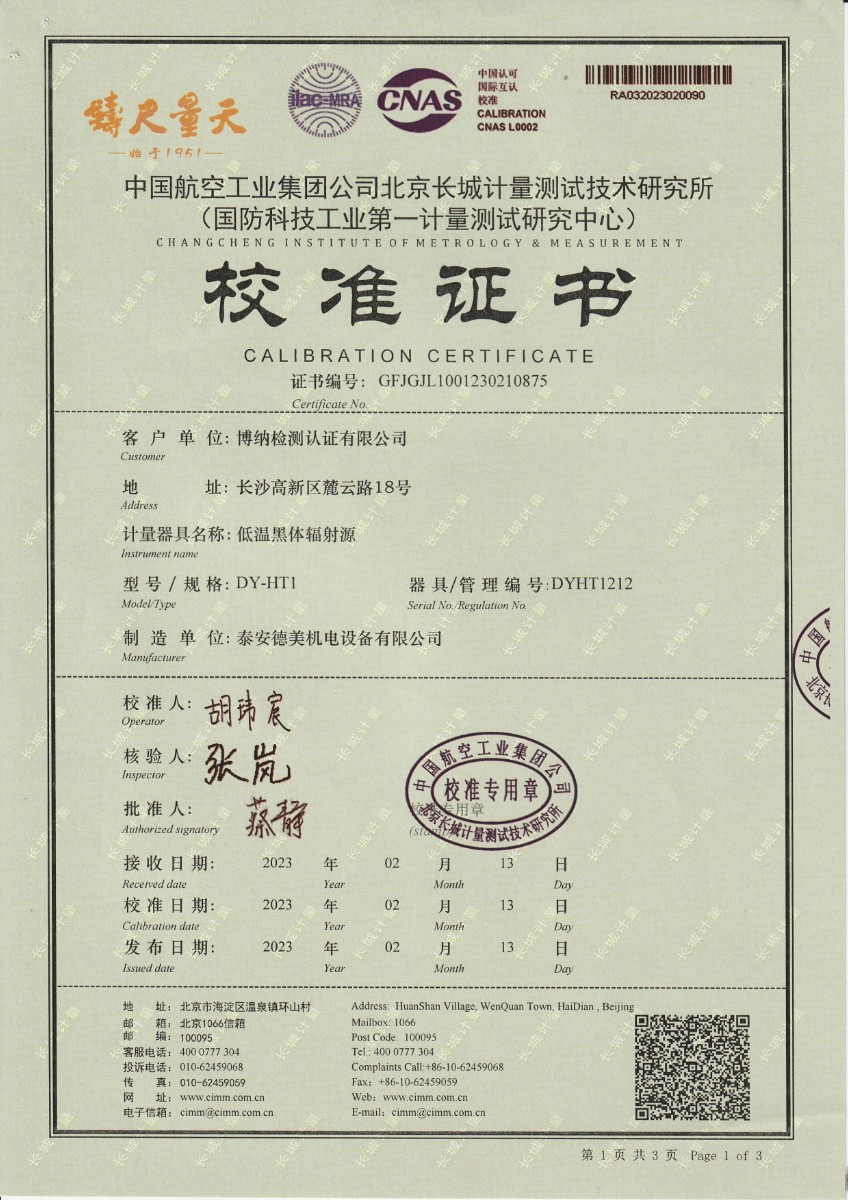 | 上一條:晶科能源(海寧)有限公司 冷鏡式露點儀(溫度) 校準(zhǔn)證書 | 下一條:高精度數(shù)字溫度計-校準(zhǔn)證書 |