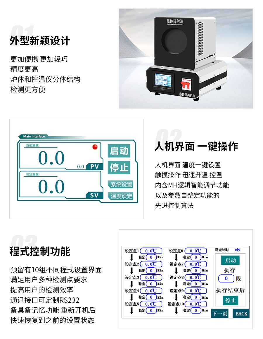 標(biāo)準(zhǔn)黑體作為標(biāo)準(zhǔn)輻射源,主要用于校準(zhǔn)輻射溫度計(jì)、紅外溫度計(jì)和輻射溫度傳感探測(cè)器。我公司目前具有先進(jìn)的黑體技術(shù),產(chǎn)品種類全、溫度范圍寬的黑體系列產(chǎn)品。產(chǎn)品體積小、重量輕、便于攜帶,不僅適合各級(jí)計(jì)量機(jī)構(gòu)實(shí)驗(yàn)室校準(zhǔn)輻射溫度計(jì)使用,同時(shí)可以用于現(xiàn)場(chǎng)校準(zhǔn)。面源黑體輻射源是紅外輻射工作標(biāo)準(zhǔn),廣泛應(yīng)用在紅外探測(cè)器的研制過程中的工藝測(cè)試和鑒定試驗(yàn)的技術(shù)指標(biāo)測(cè)試中。同時(shí),面源黑體輻射源作為紅外成像棱準(zhǔn)裝置的核心設(shè)備,配合紅外準(zhǔn)直光學(xué)系統(tǒng)和紅外靶標(biāo),完成紅外成像系統(tǒng)等關(guān)鍵技術(shù)指標(biāo)測(cè)試和性能評(píng)估??梢詽M足我國(guó)新研制的紅外成像制導(dǎo)武器中紅外成像器的測(cè)試需求,可以滿足廣泛應(yīng)用于醫(yī)療、建筑、安全監(jiān)控、環(huán)境檢測(cè)等行業(yè)紅外熱像儀的測(cè)試需求。