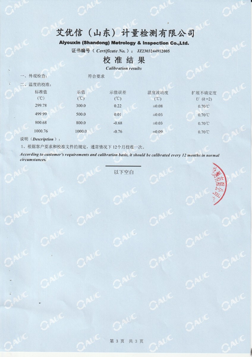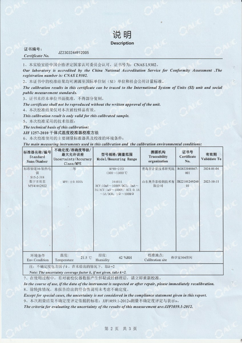 上一條:湖南長量檢測股份有限公司 黑體爐 校準證書下一條:高精度數(shù)字溫度計-校準證書