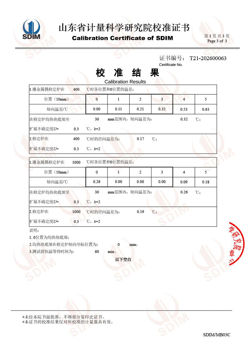 廉金屬熱電偶檢定爐-校準(zhǔn)證書(shū)