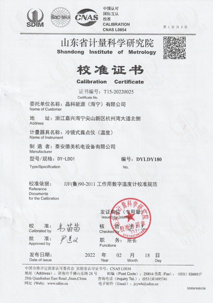 | 上一條:河北京車軌道交通車輛裝備有限公司-冷鏡式露點儀檢定證書 | 下一條:制冷恒溫槽-校準(zhǔn)證書 |
