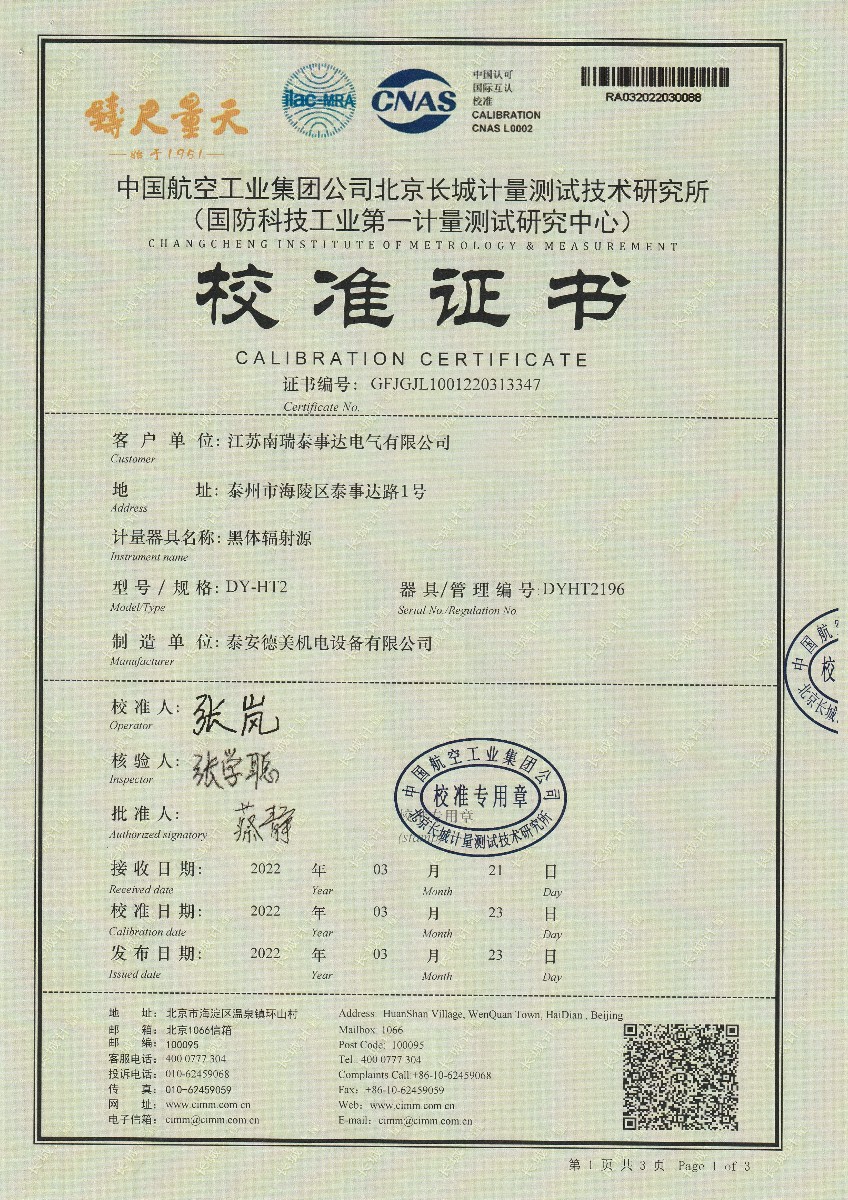 | 上一條:嘉興尚嘉智能技術(shù)有限公司黑體輻射源(DY-HT2D) | 下一條:高精度數(shù)字溫度計-校準(zhǔn)證書 |