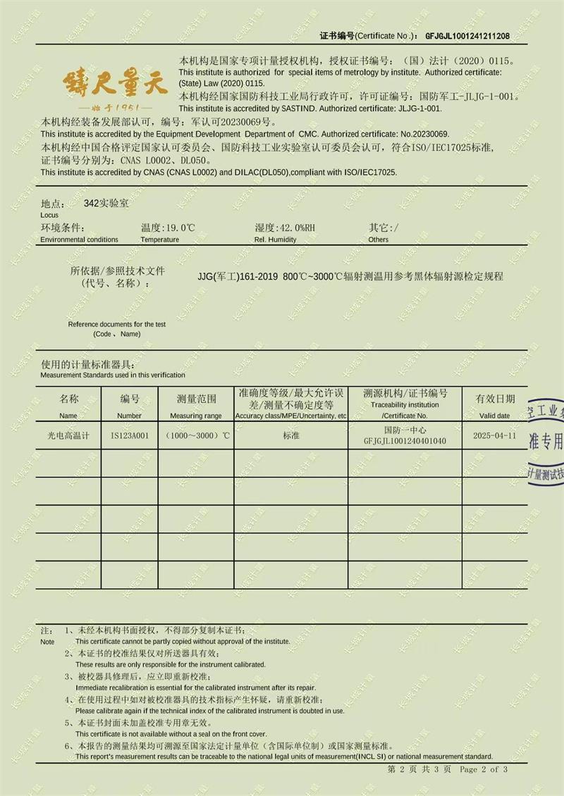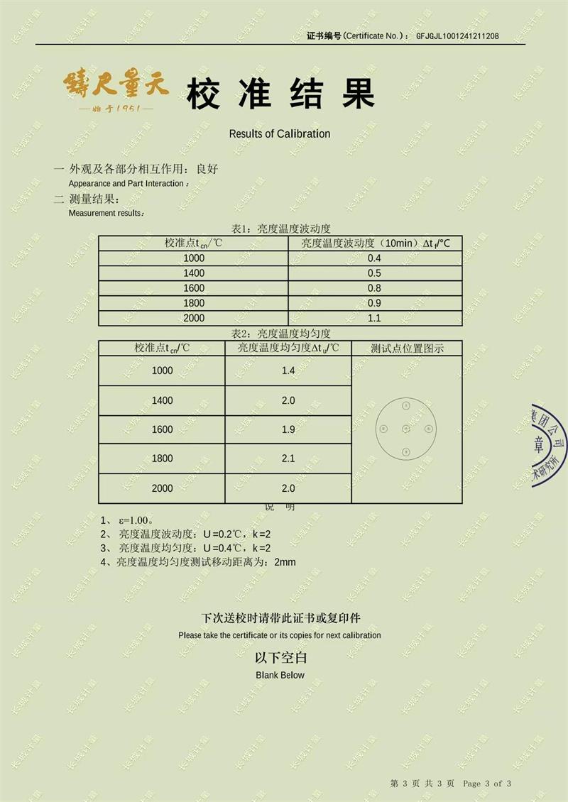 高溫黑體爐(800-3000℃)校準證書 2025-1-11 本文被閱讀 6438 次