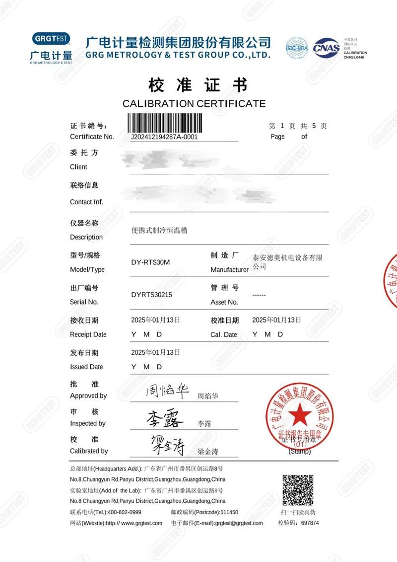 | 上一條:便攜式制冷恒溫槽(-30-105℃)校準(zhǔn)證書 | 下一條:高精度數(shù)字溫度計-校準(zhǔn)證書 |
