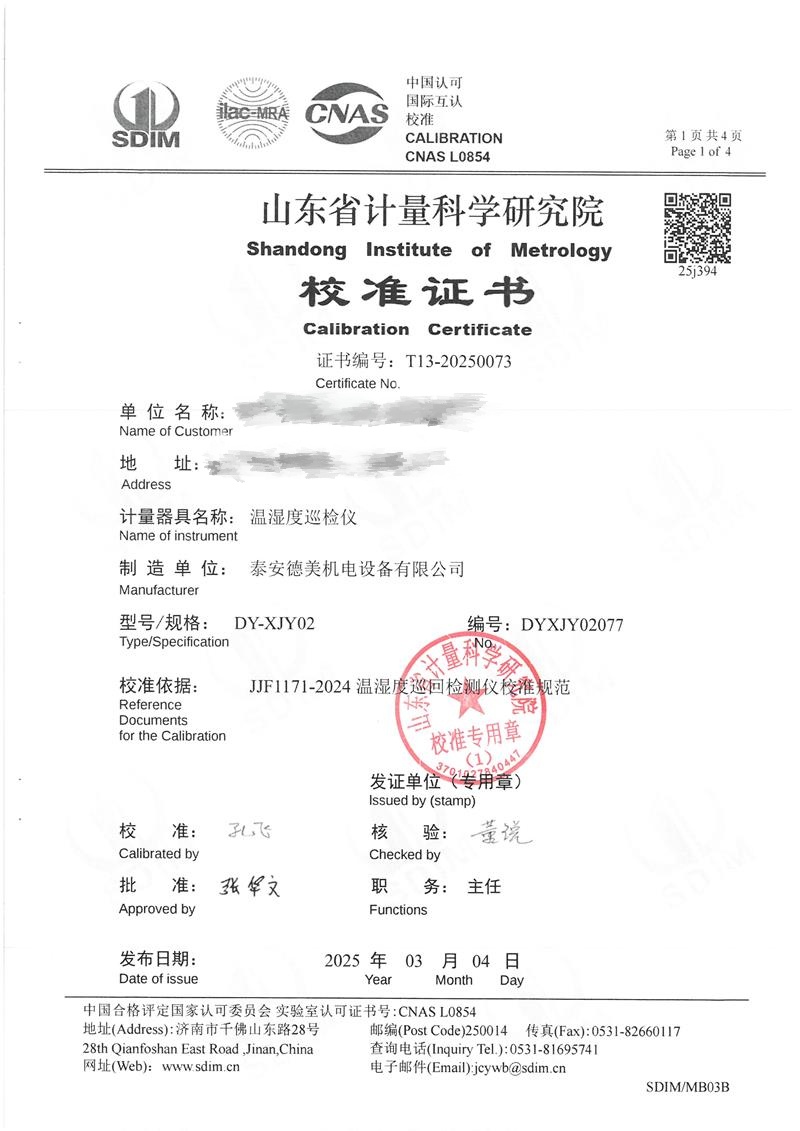 溫濕度巡檢儀校準證書 2025-3-8 本文被閱讀 4697 次