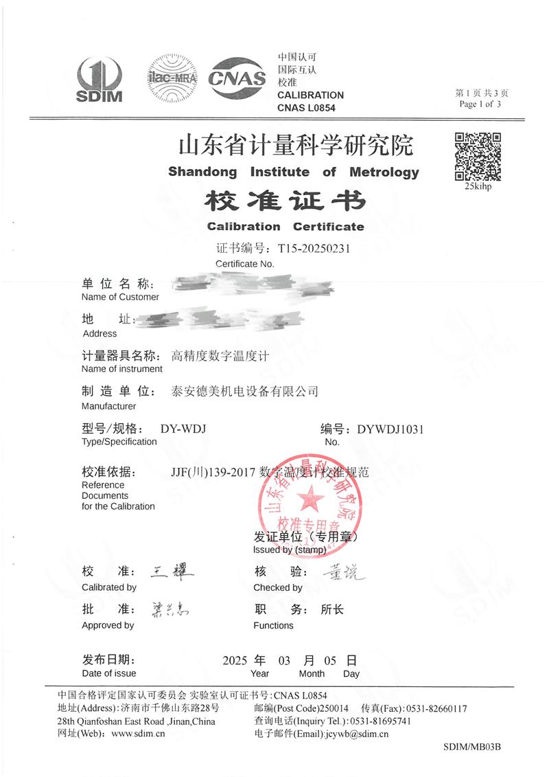 高精度數(shù)字溫度計校準(zhǔn)證書 2025-3-8 本文被閱讀 4459 次