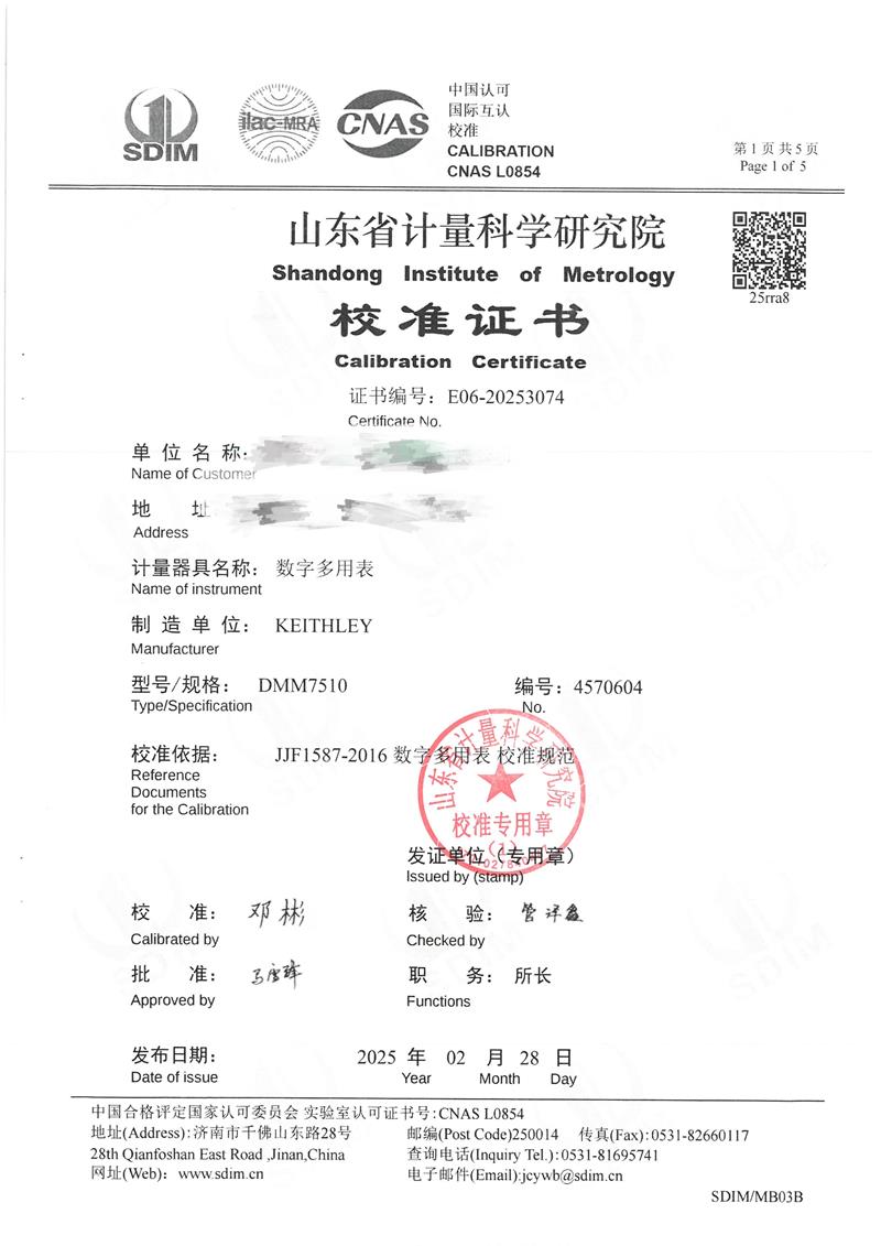 數(shù)字多用表校準(zhǔn)證書 2025-3-8 本文被閱讀 5014 次
