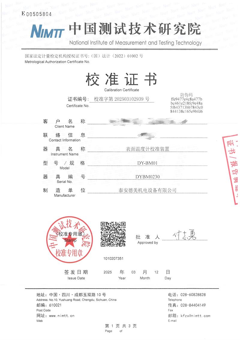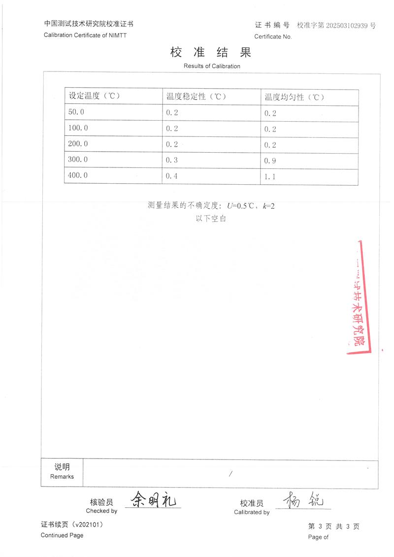 | 上一條:中溫黑體爐(50~700℃)校準(zhǔn)證書 | 下一條:高精度數(shù)字溫度計(jì)-校準(zhǔn)證書 |