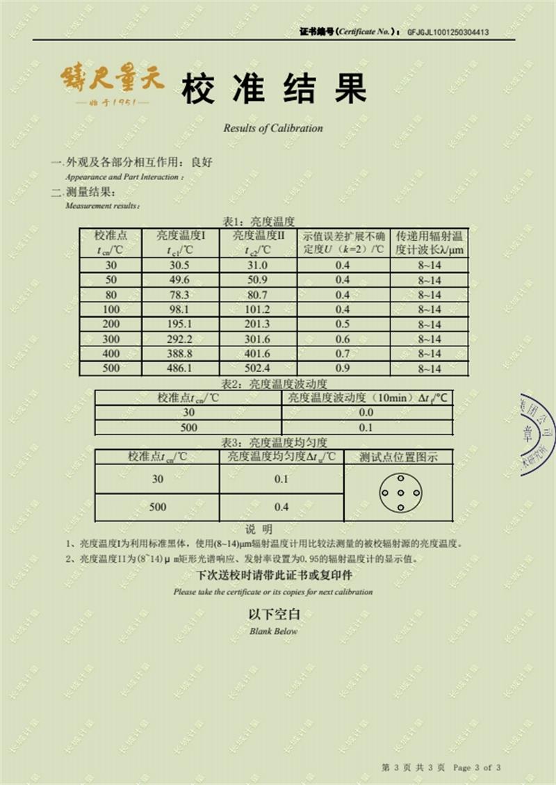| 上一條:貴金屬熱電偶檢定爐(300-1200℃)校準(zhǔn)證書 | 下一條:高精度數(shù)字溫度計-校準(zhǔn)證書 |