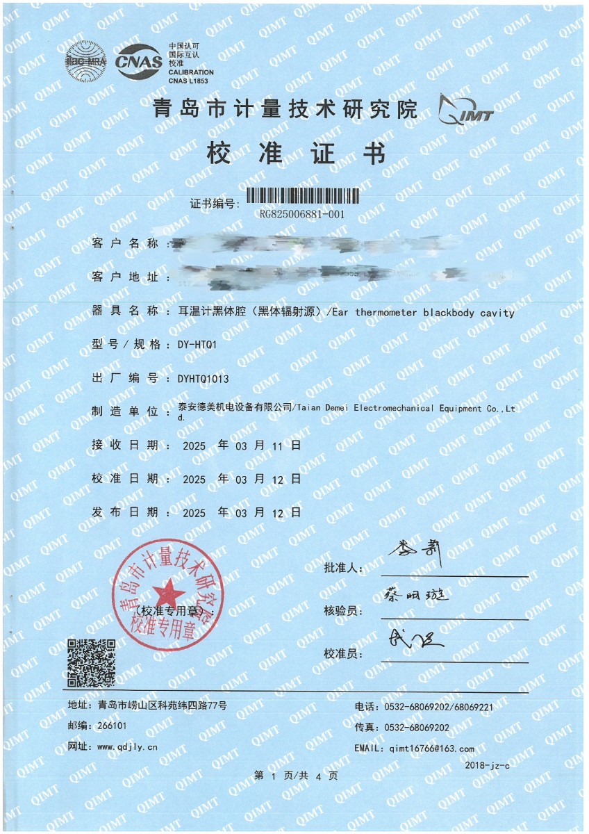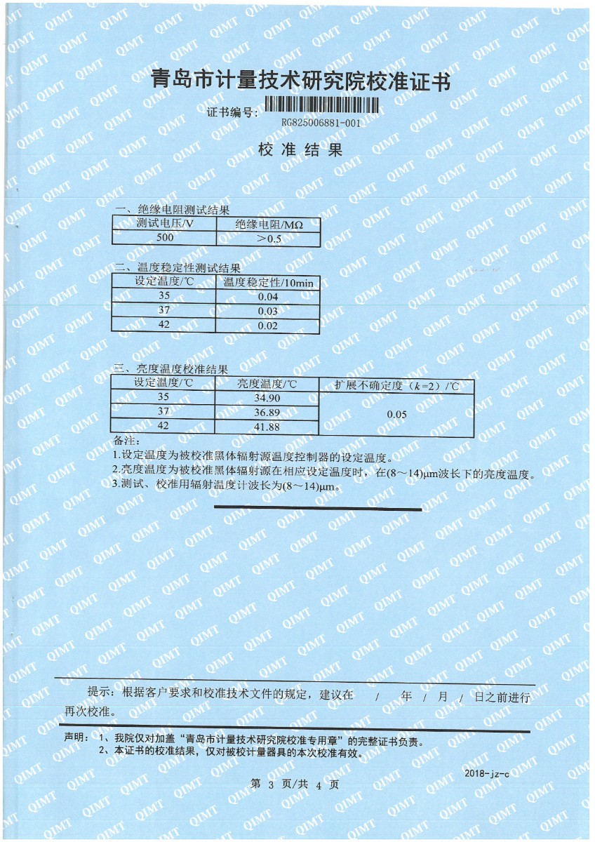 | 上一條:面源黑體爐(室溫+5-500℃)校準(zhǔn)證書 | 下一條:高精度數(shù)字溫度計(jì)-校準(zhǔn)證書 |