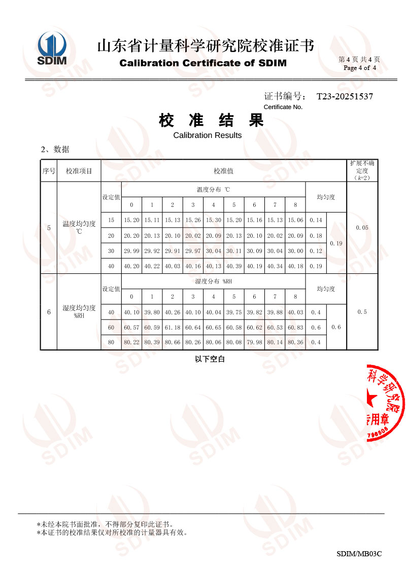 溫濕度檢定箱(-5-65℃)校準(zhǔn)證書