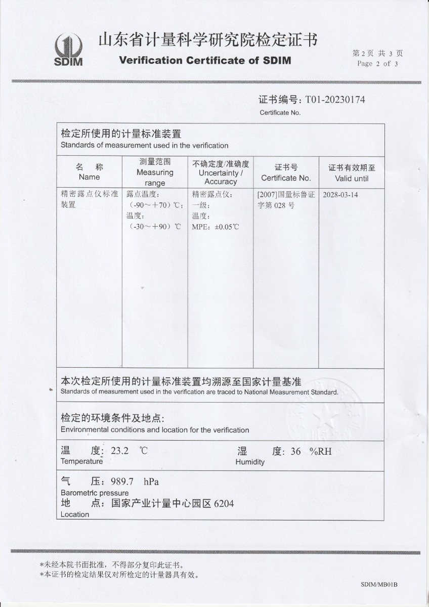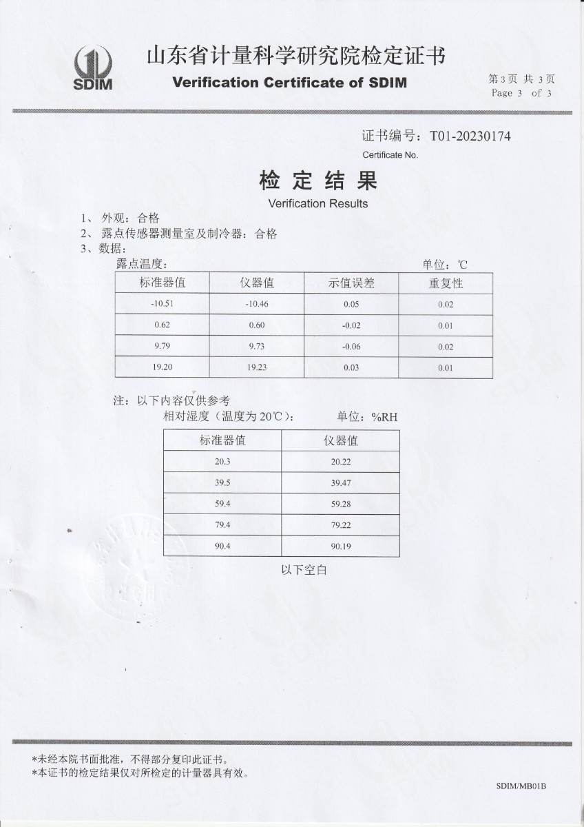冷鏡式露點儀檢定證書 2023-12-13 本文被閱讀 10377 次