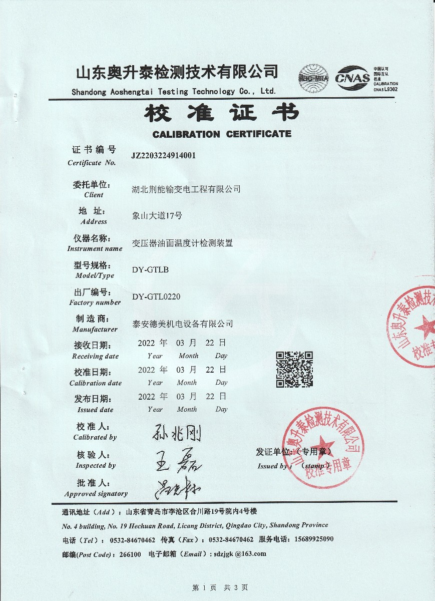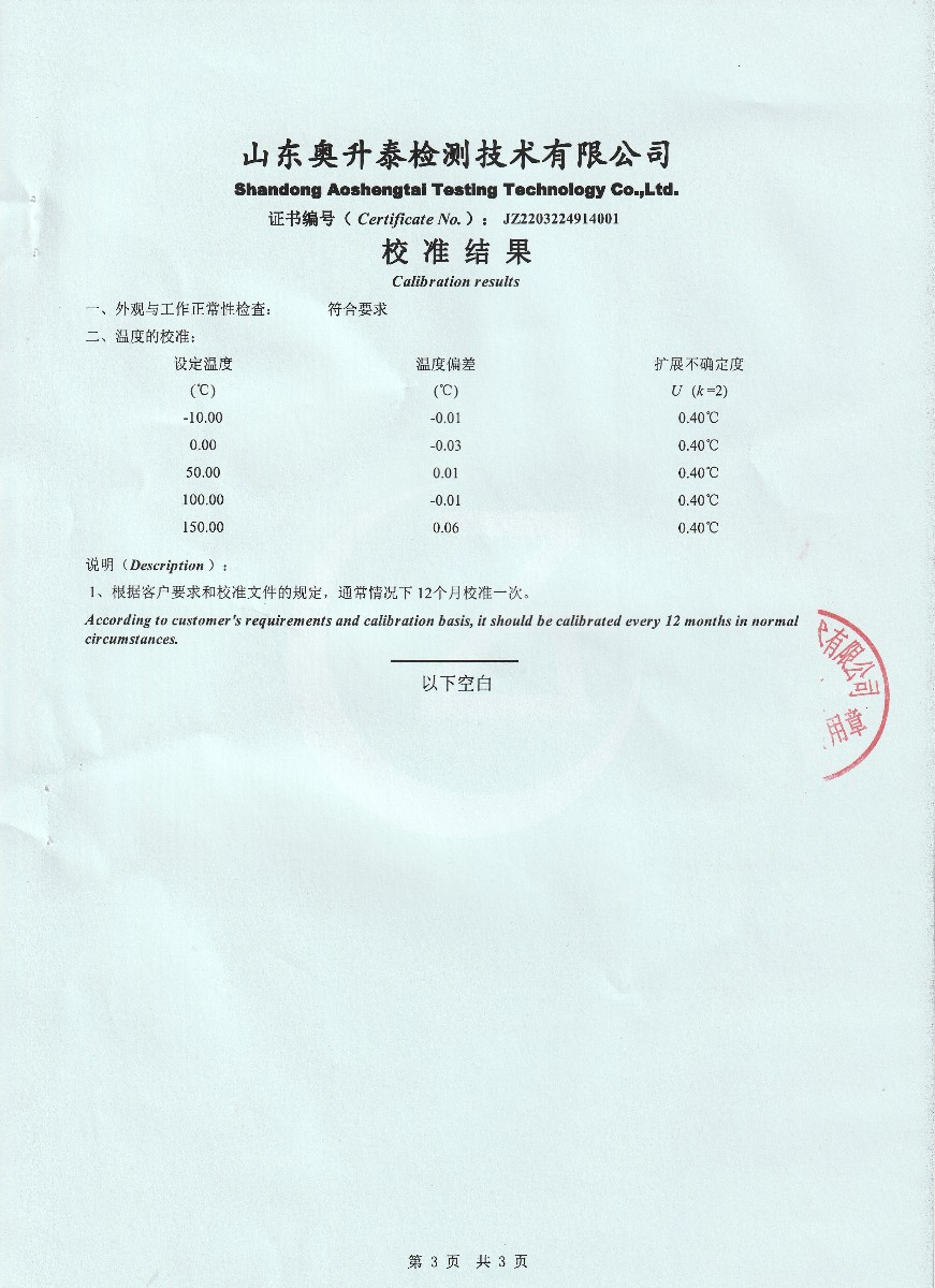 | 上一條:晶科能源(海寧)有限公司-溫濕度檢定箱 | 下一條:高精度數(shù)字溫度計(jì)-校準(zhǔn)證書 |