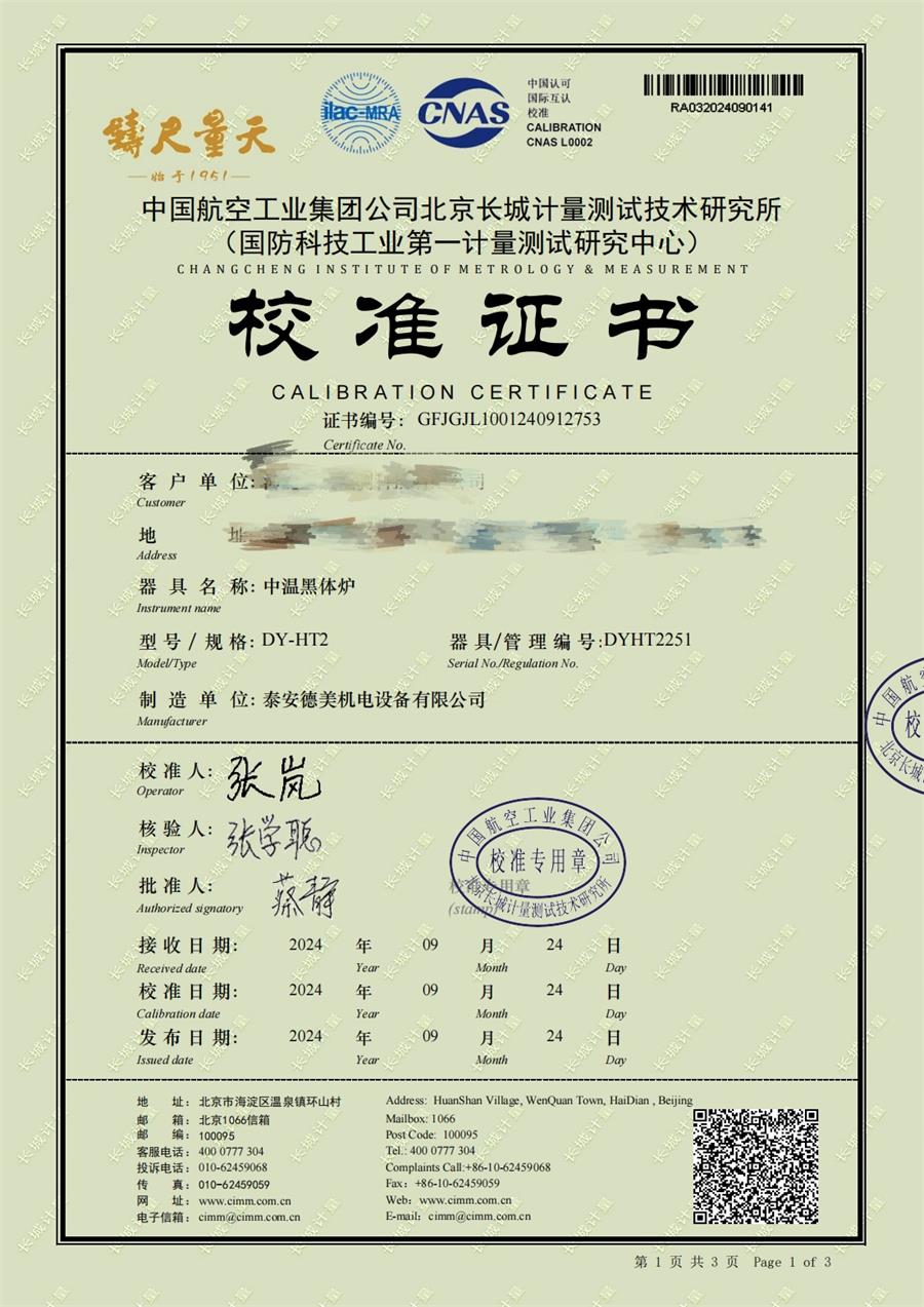 上一條:高溫黑體爐(300-1200℃)校準證書下一條:高精度數(shù)字溫度計-校準證書