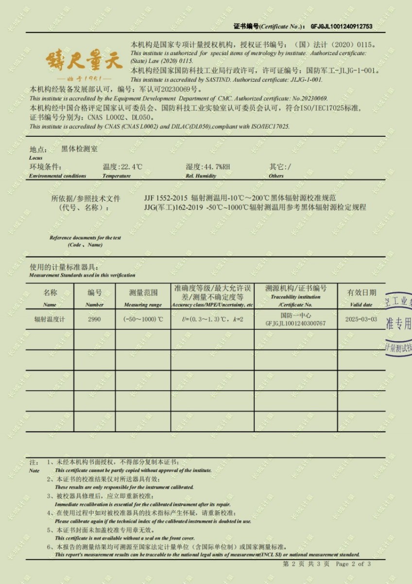 中溫黑體爐(50-500℃)校準證書 2024-10-17 本文被閱讀 6549 次