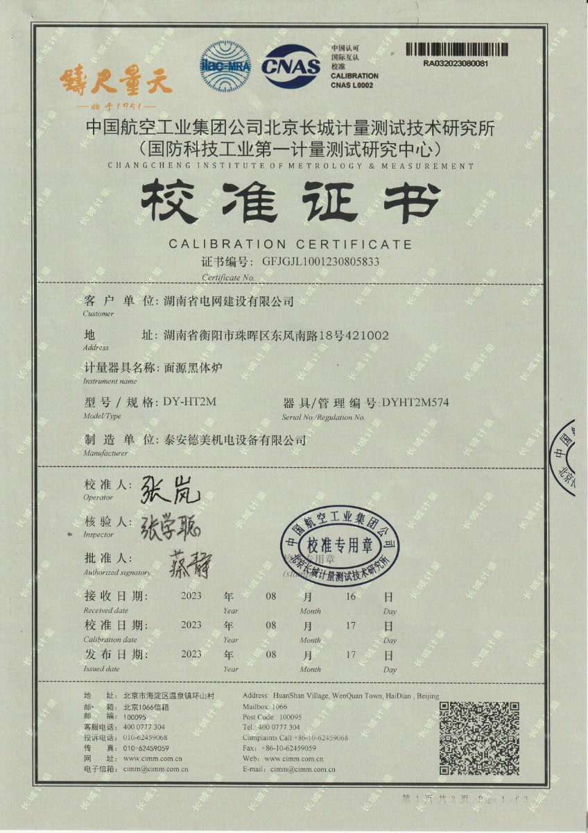 湖南省電網(wǎng)建設有限公司-面源黑體爐 2023-9-4 本文被閱讀 11532 次