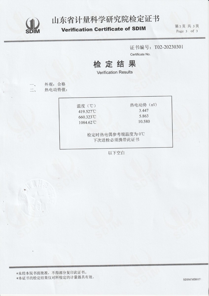 | 上一條:標(biāo)準(zhǔn)鉑銠10-鉑熱電偶S23-7108檢定證書 | 下一條:高精度數(shù)字溫度計(jì)-校準(zhǔn)證書 |