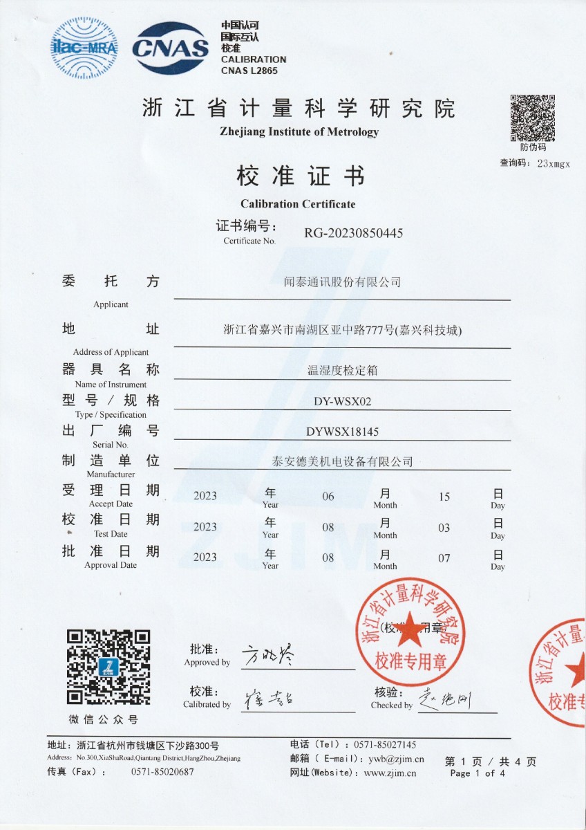 聞泰通訊股份有限公司-溫濕度檢定箱 2023-8-12 本文被閱讀 13974 次