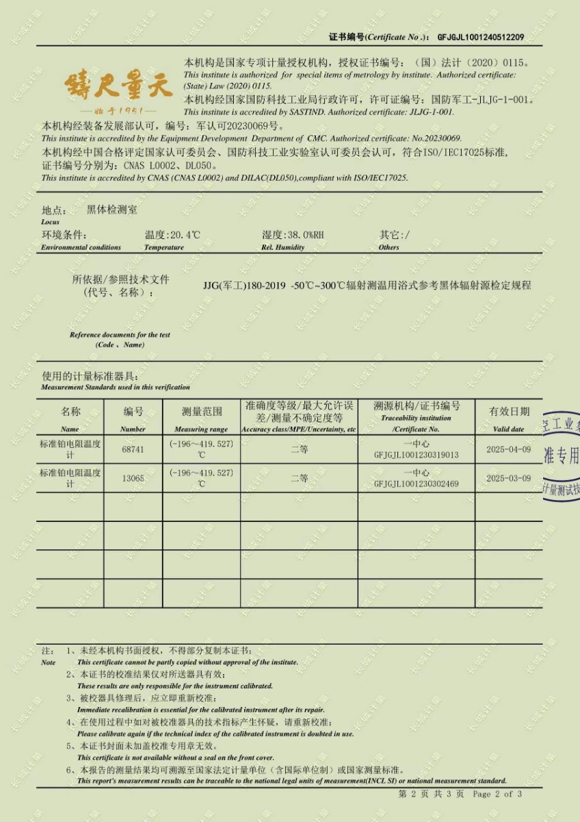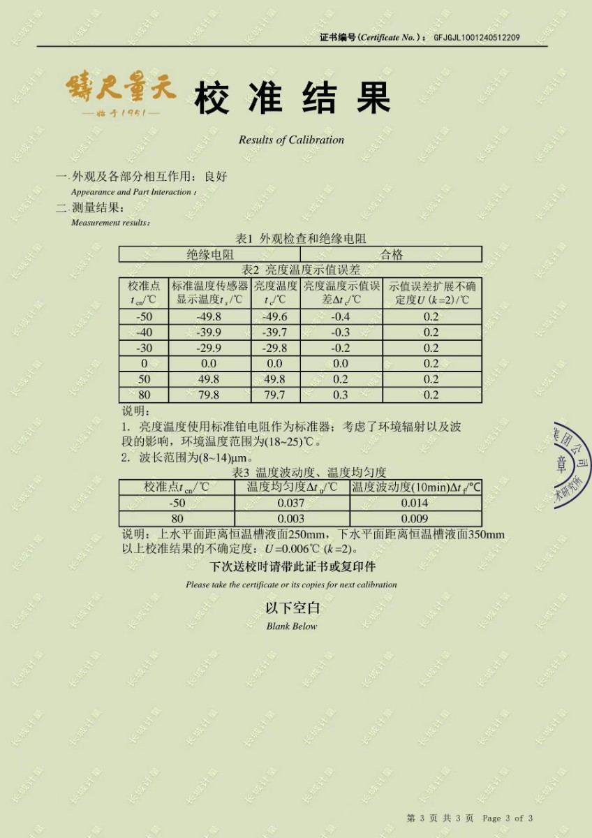 低溫浴式黑體輻射源校準(zhǔn)證書