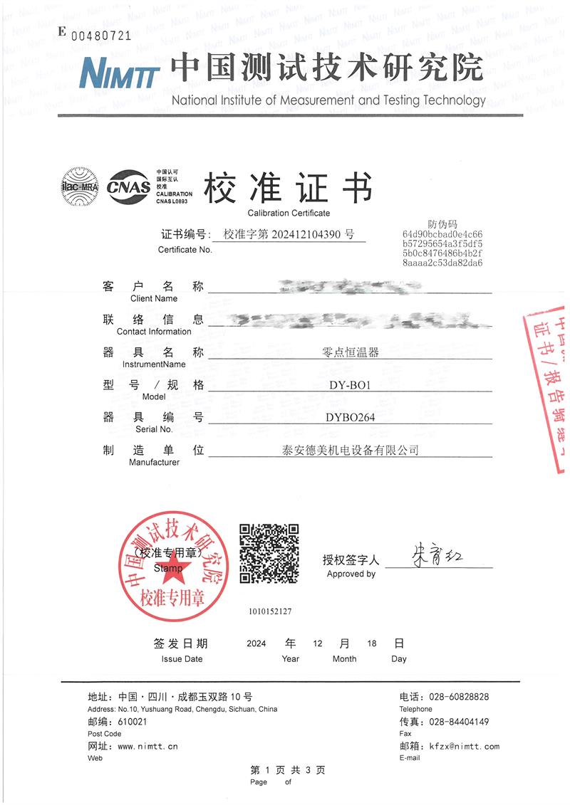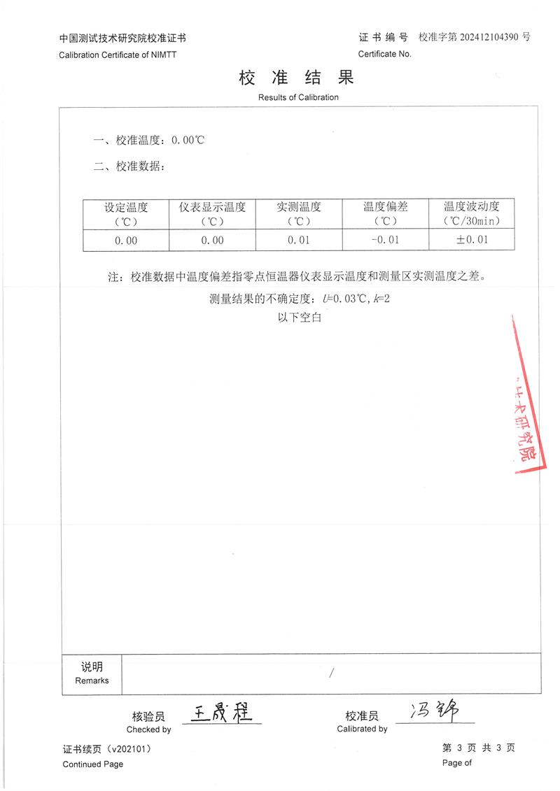 | 上一條:低溫浴式面源黑體爐(-50-80℃)校準(zhǔn)證書 | 下一條:高精度數(shù)字溫度計(jì)-校準(zhǔn)證書 |
